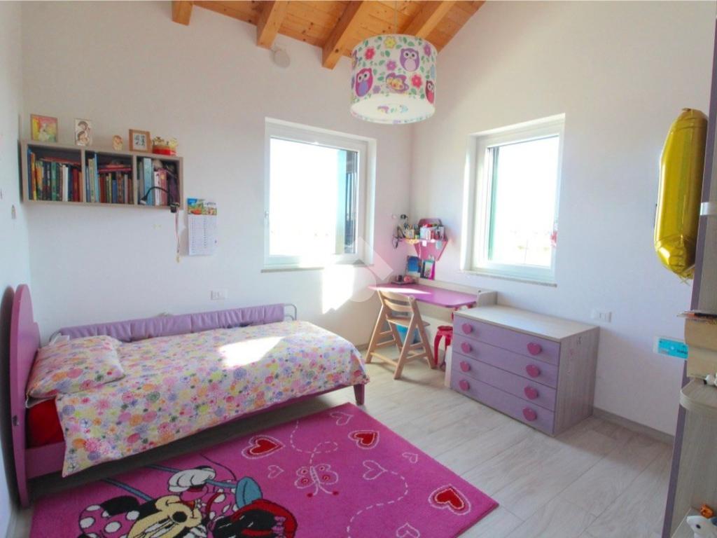 Passando dalla zona giorno procediamo nella zona notte composta da un bagno finestrato con doccia, una camera padronale con bagno in suite e due camere singole confortevoli, che grazie agli ampi spazi sono adattabili per più esigenze.